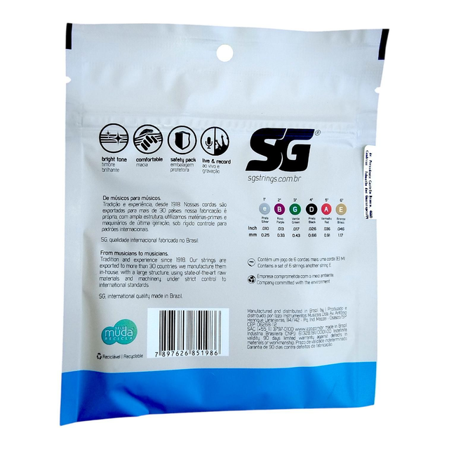 079 - Encordoamento Cordas Guitarra 010 SG Strings Cód 079